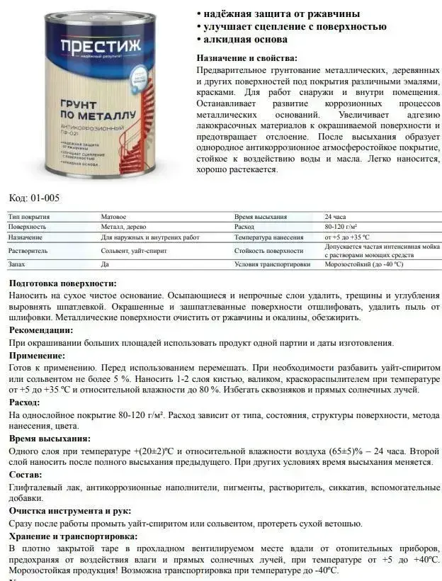 Грунт по металлу и дереву ПРЕСТИЖ ГФ-021 антикоррозионный, серый, 1,9кг