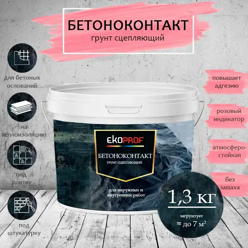 Грунтовка Бетоноконтакт Akrimax 1,3 кг, адгезионная, для наружных и внутренних работ, бетонконтакт розовый