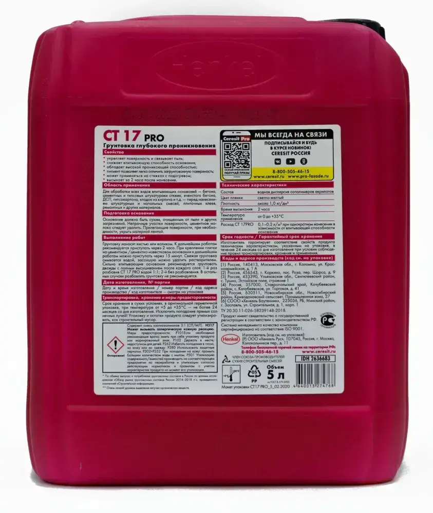 Грунтовка Ceresit CT-17 универсальная глубокого проникновения для стен, под обои, по бетону 10л