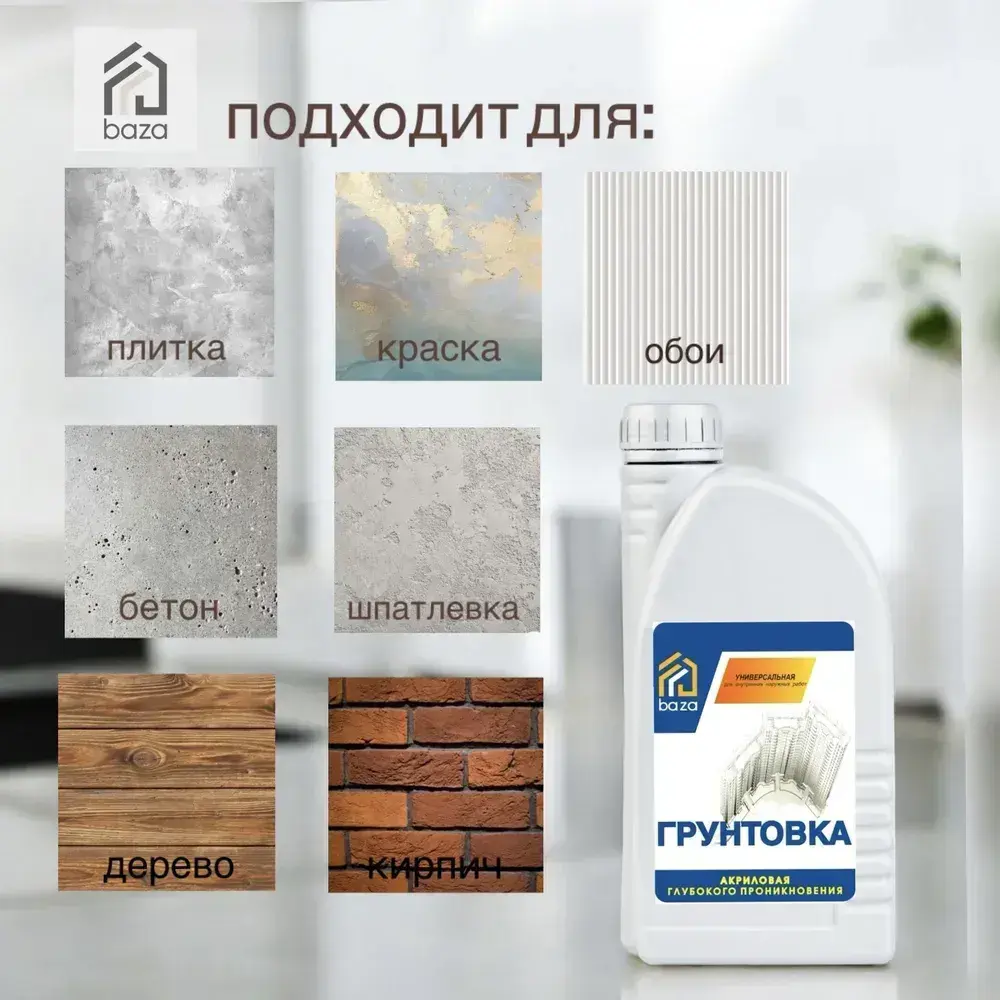 Грунтовка для стен и потолков, под обои штукатурку покраску, акриловая универсальная 1 л, глубокого проникновения, противоплесневая, противогрибковая,
