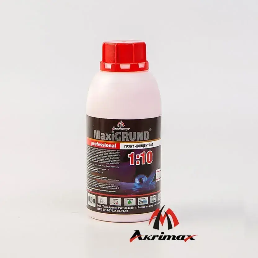 Грунтовка, грунт-концентрат 1:10 акриловый MaxiGrund, 0,5 л универсальная, для стен и потолков, глубокого проникновения, адгезионная, для наружных и внутренних работ