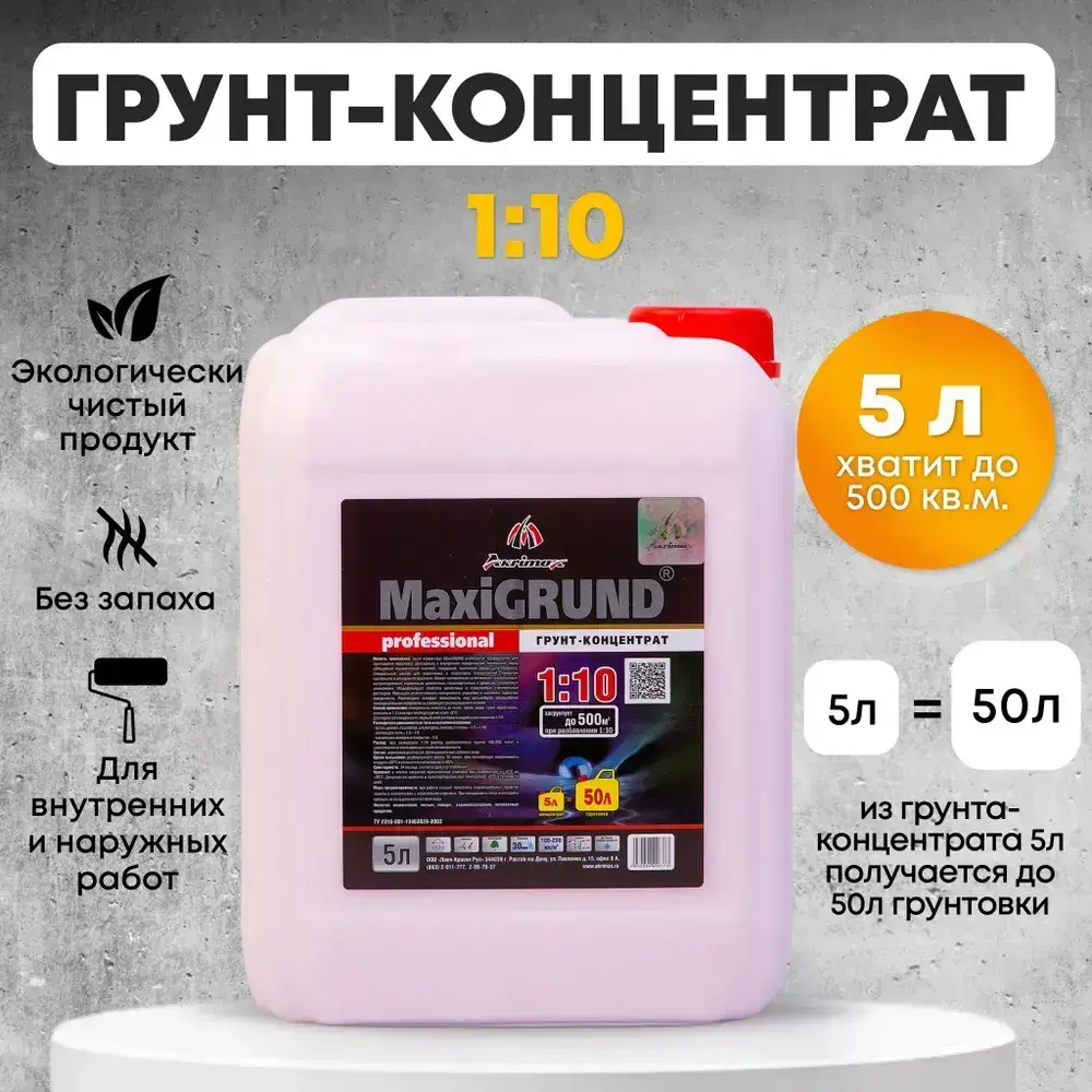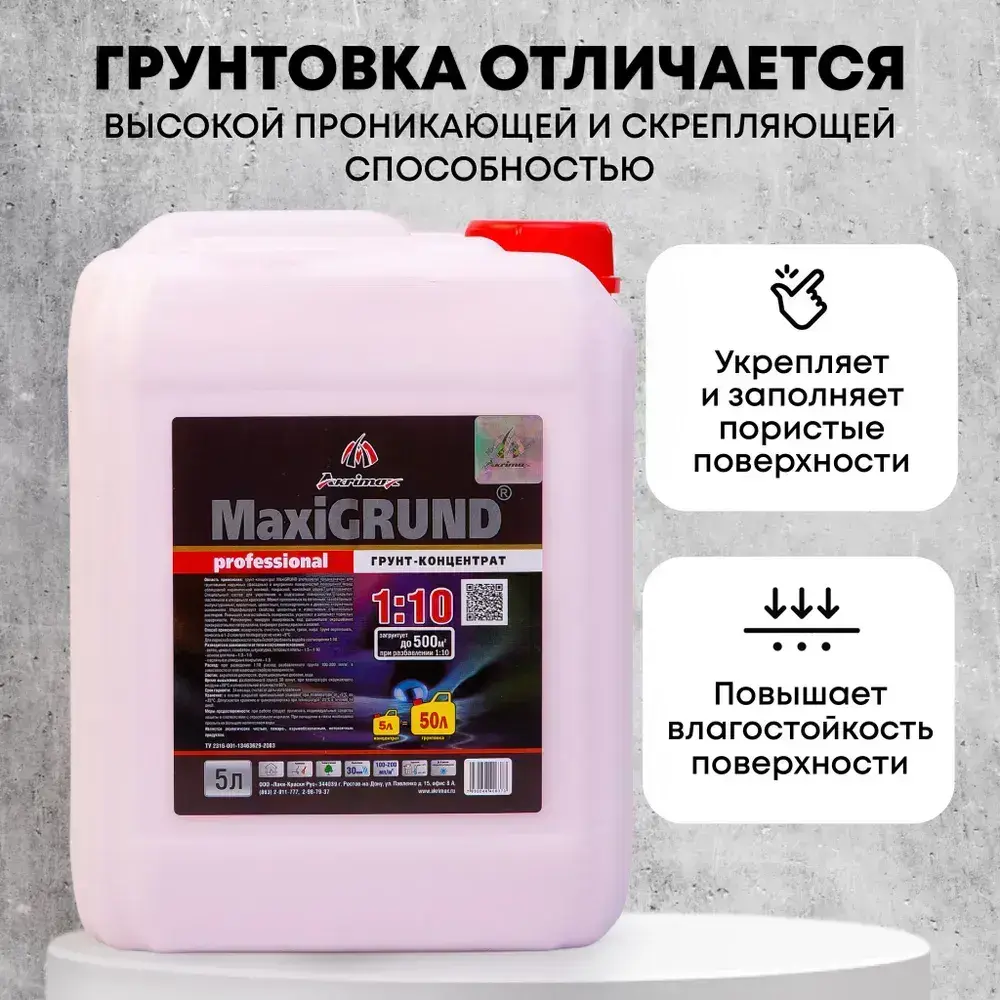 Грунтовка, грунт-концентрат 1:10 акриловый MaxiGrund, 5 л универсальная, для стен и потолков, глубокого проникновения, адгезионная, для наружных и внутренних работ