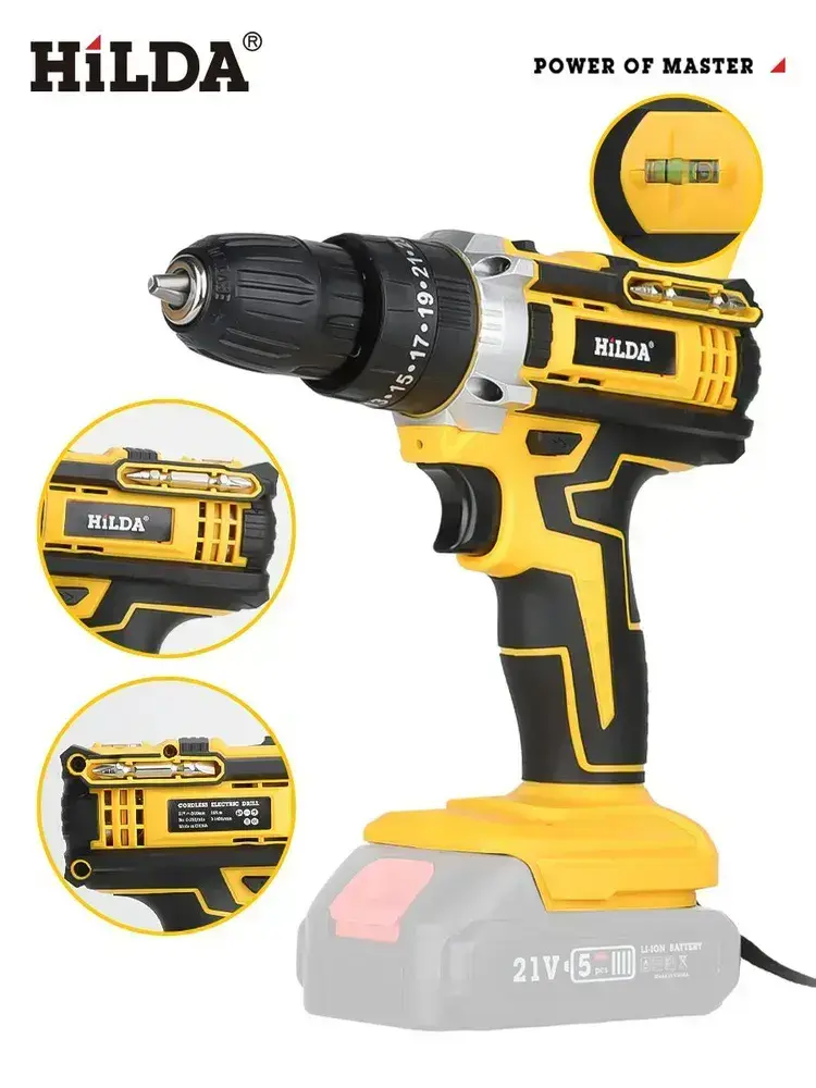 HILDA дрель шуруповерт аккумуляторная 25+3 Режима