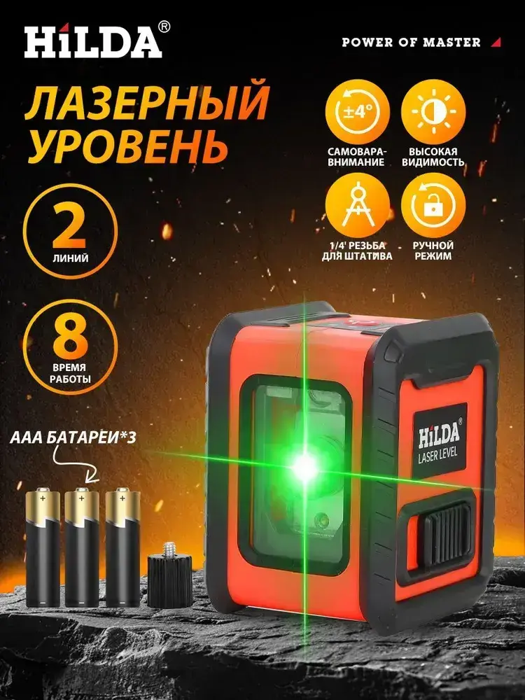 HilDA Лазерный уровень/нивелир Зеленыйлуч,ААА*3