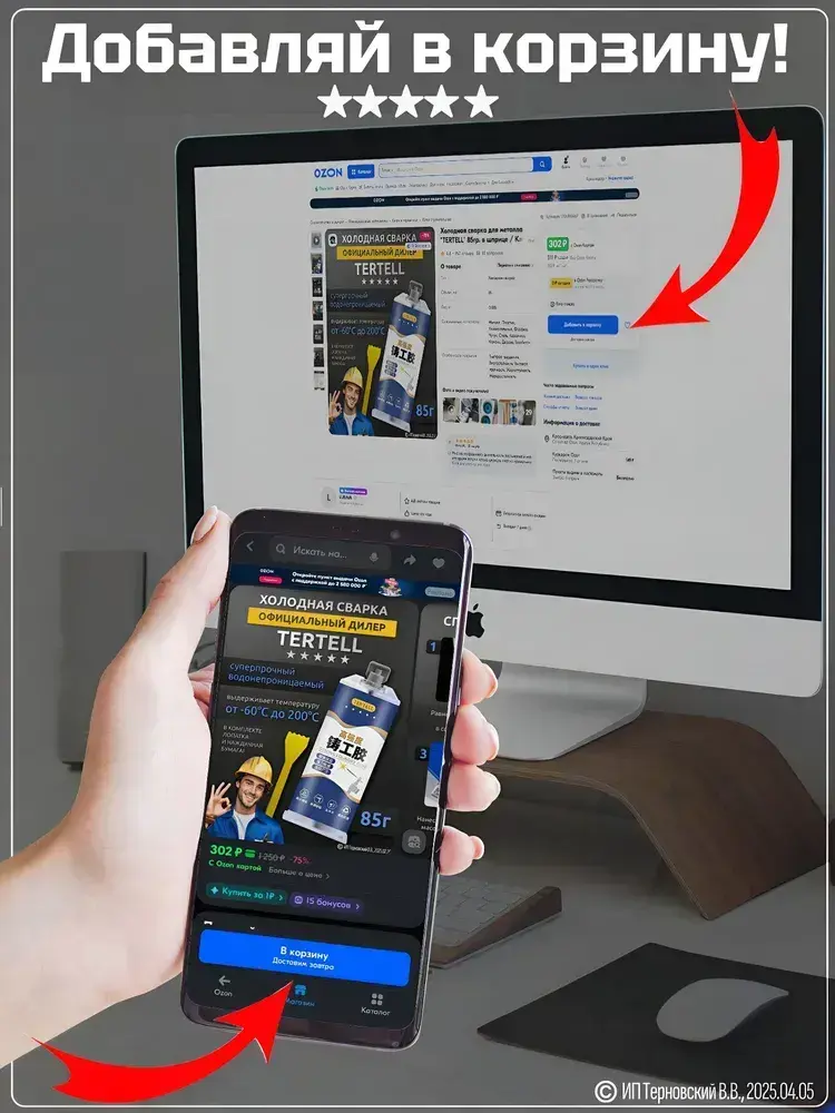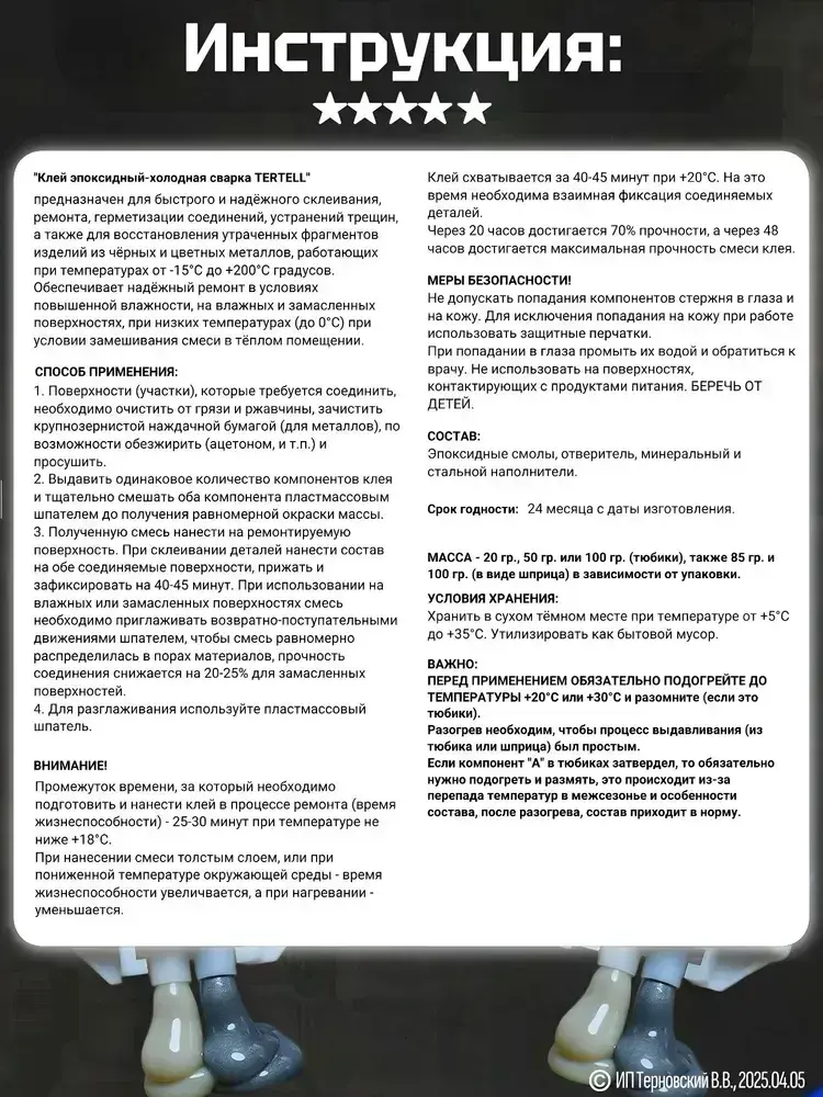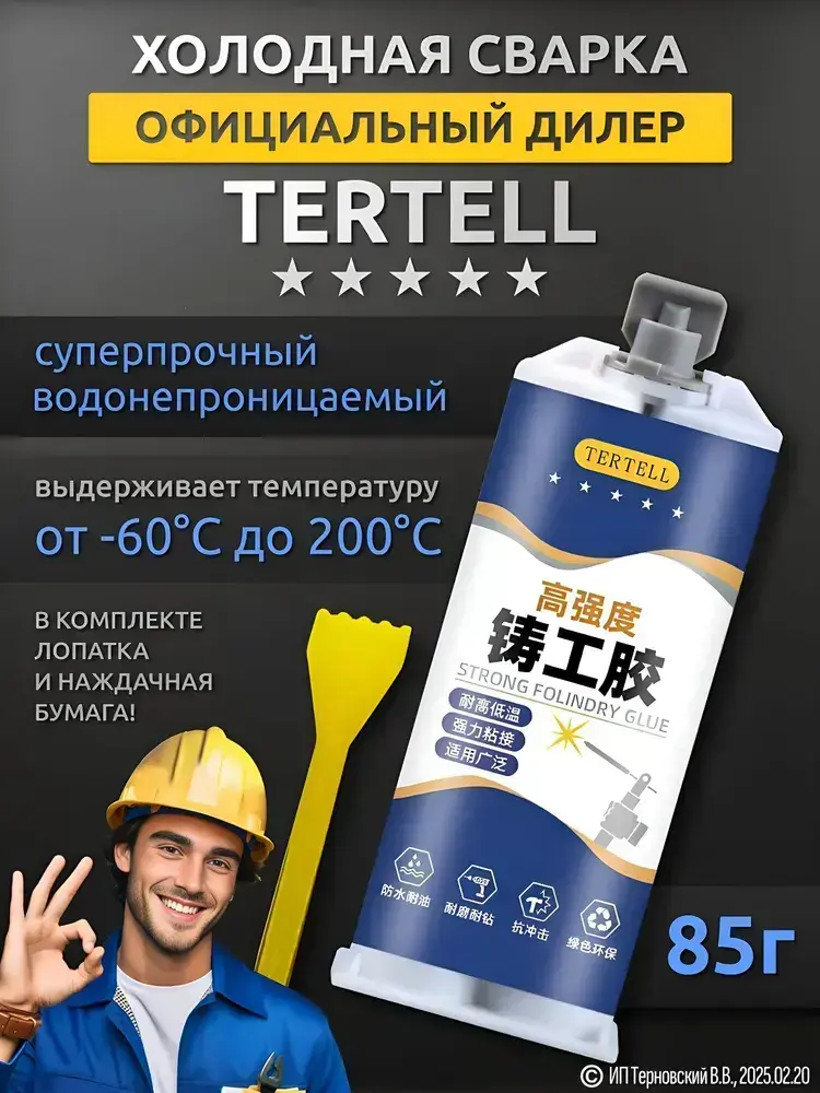 Холодная сварка для металла "TERTELL" 85гр. в шприце / Эпоксидный клей