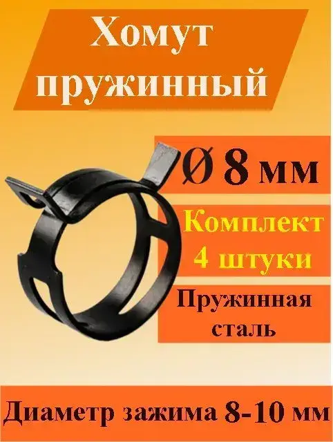 Хомут (4 шт) 8 мм пружинный автомобильный самозажимной