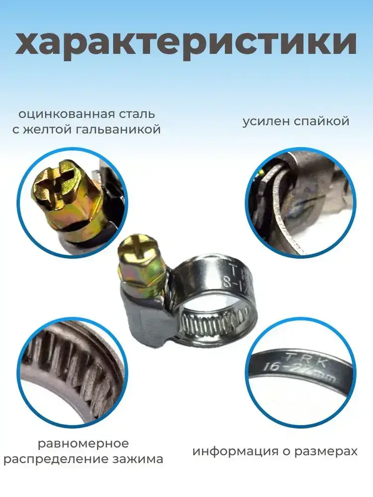 Хомут червячный из нержавеющей стали, разм. 16х27 мм, 10 шт