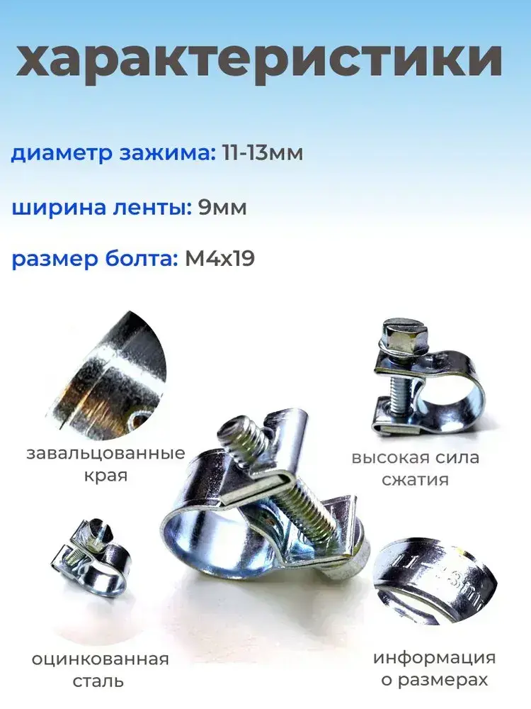 Хомут силовой мини 11х13 мм, 10 шт., оцинкованная сталь W1