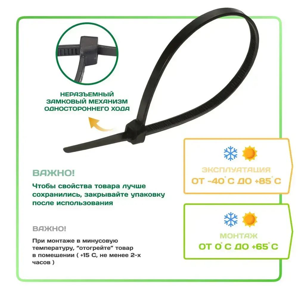 Хомут стяжка пластиковая, хомут нейлоновый черный 4,8х200мм