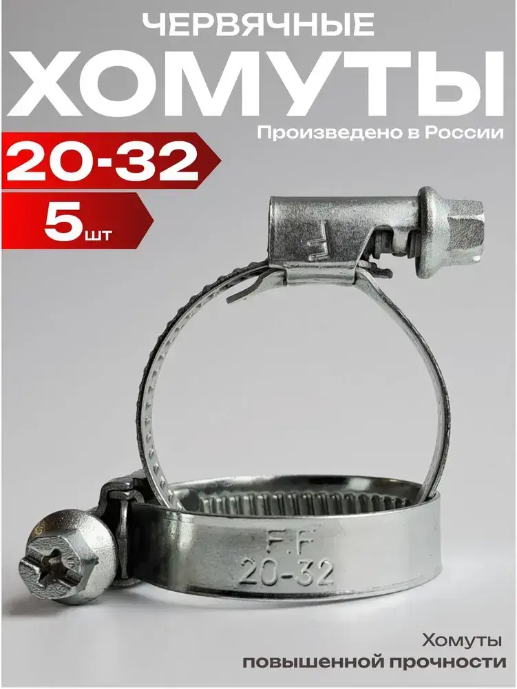 Хомуты металлические для шланга червячные 20-32 мм, 5 шт, набор хомутов металлических