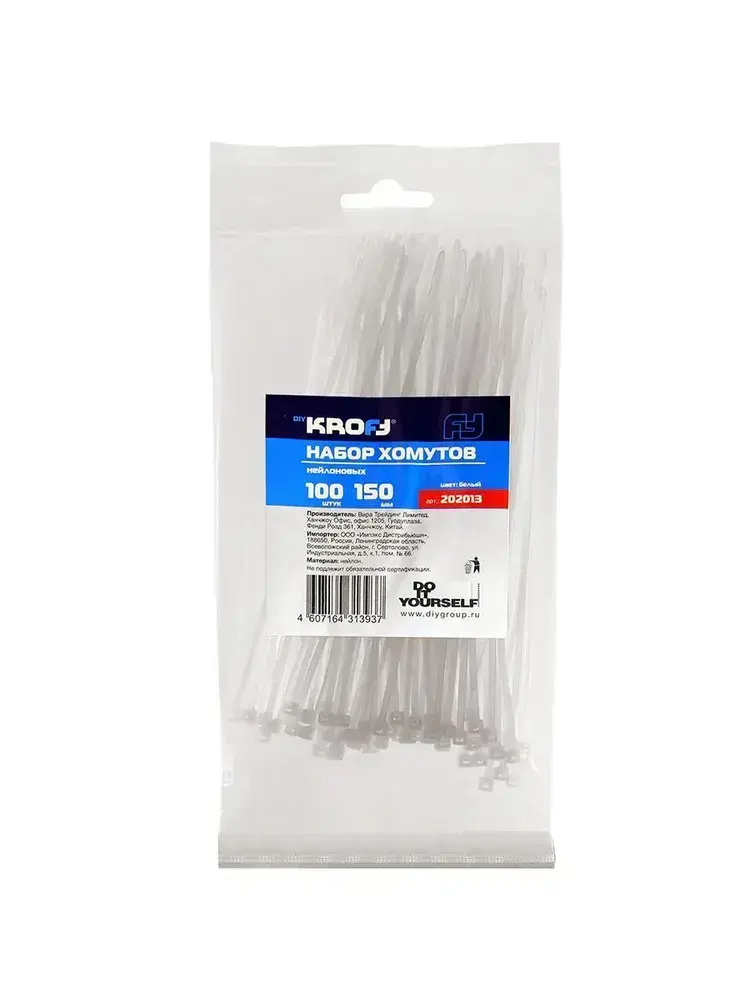 Хомуты пластиковые стяжки 150 мм 100 шт Белые KROFT