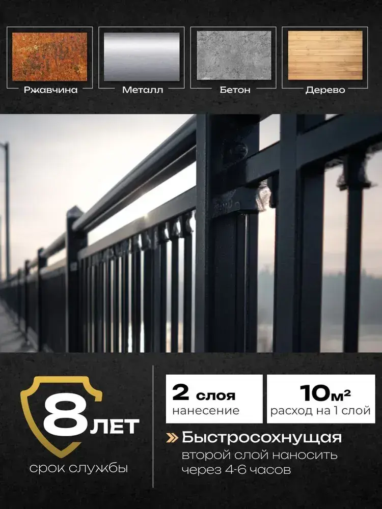HUSKY KLONDIKE, Краска по металлу чёрная матовая, RAL 9005, по ржавчине, антикорозионная, атмосферостойкая, 2,5 л