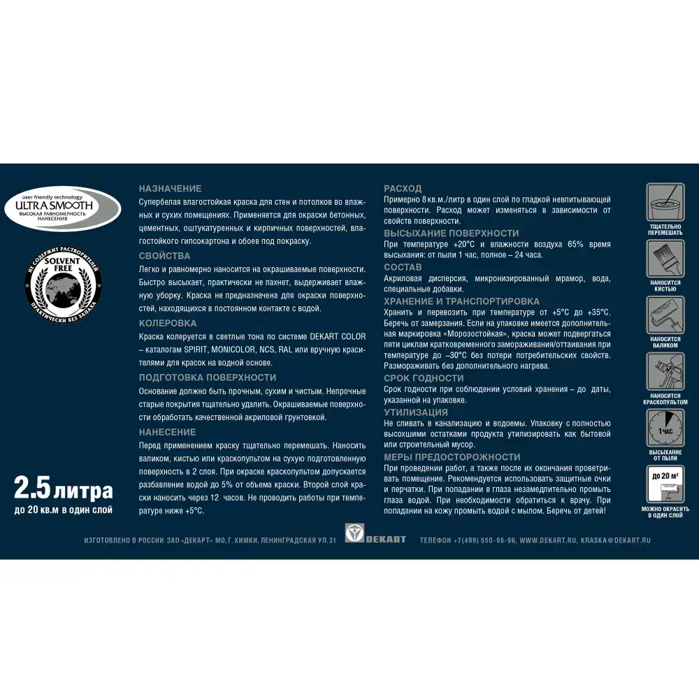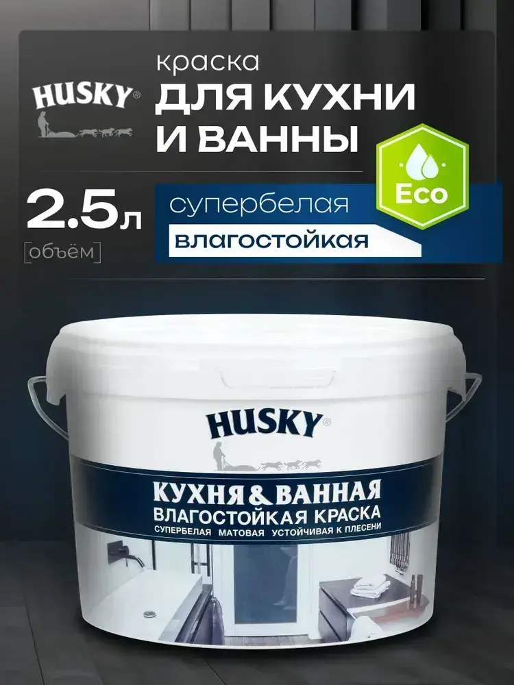 HUSKY, Краска для кухни и ванной белая матовая, устойчивая к плесени, влагостойкая, акриловая, 2,5 л