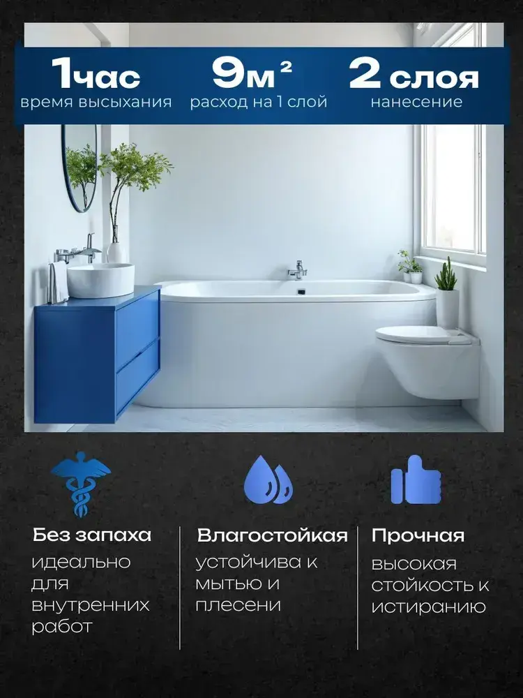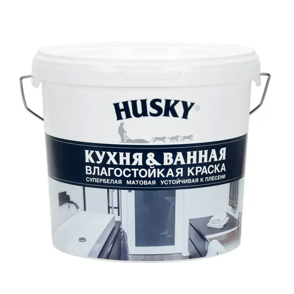 HUSKY, Краска для кухни и ванной белая матовая, устойчивая к плесени, влагостойкая, акриловая, 5 л