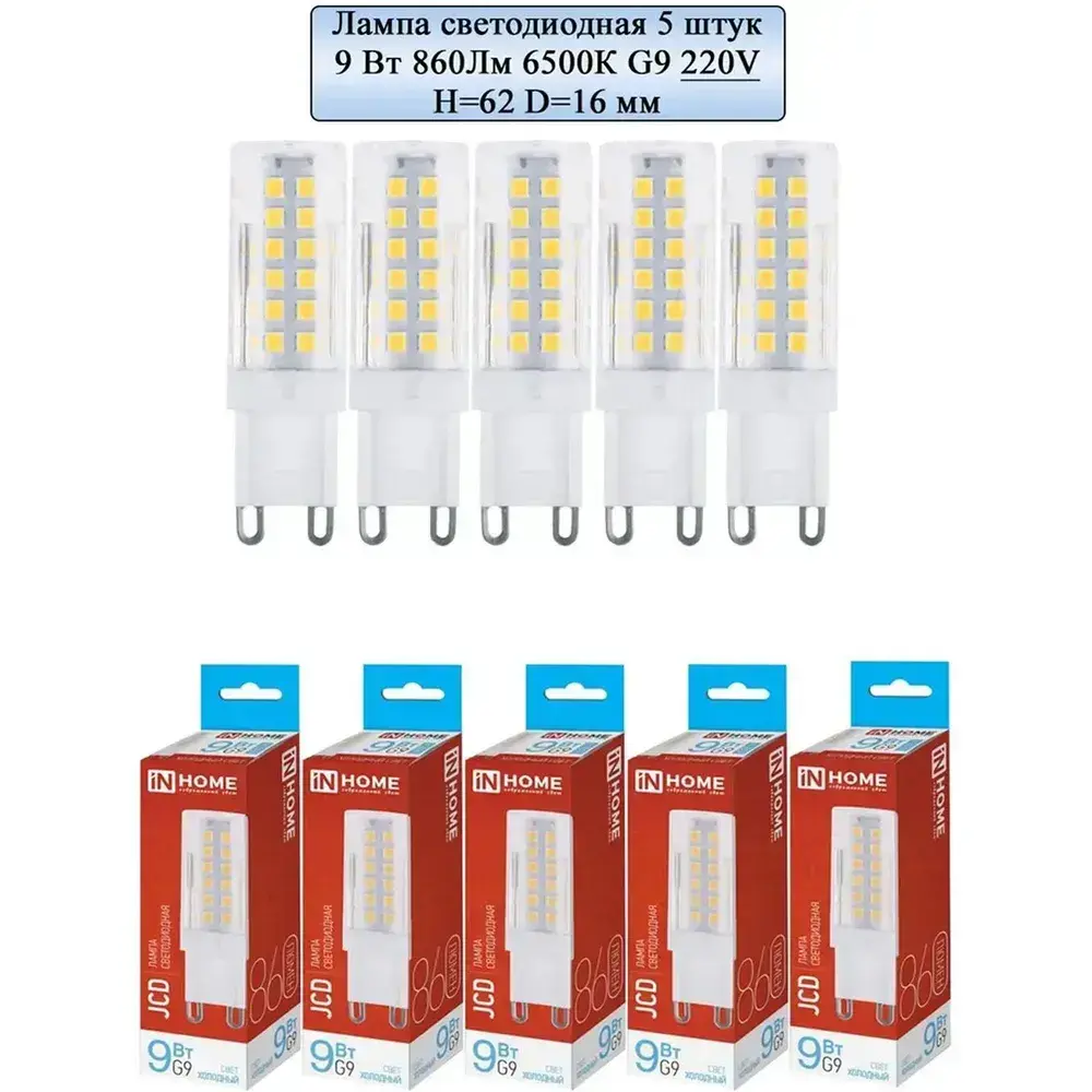 IN HOME Лампочка, Цоколь:G9, 9 Вт, Светодиодная, 5 шт.