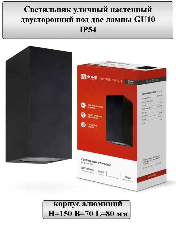 IN HOME Уличный светильник, GU10, количество ламп:2шт