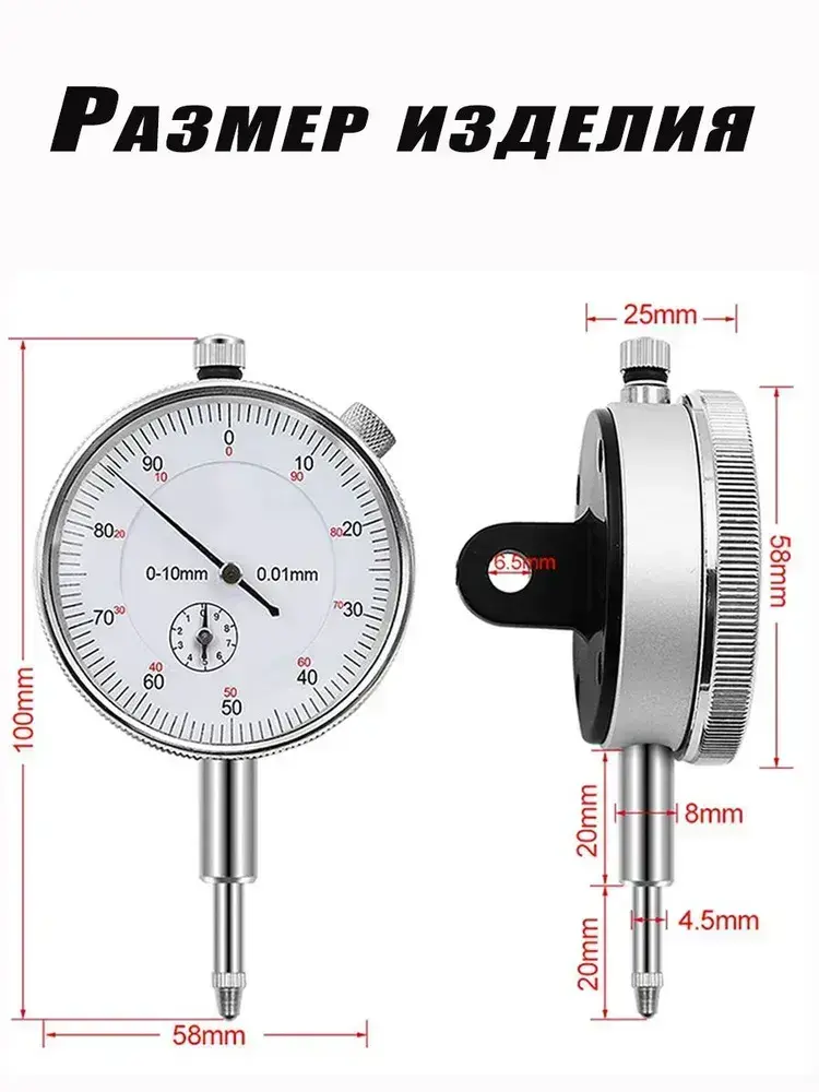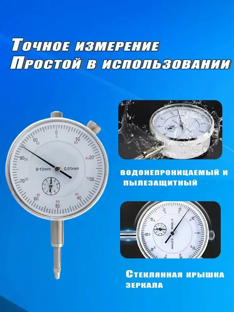 Индикатор часового типа 0-10 мм с точностью 0,01 мм Механический измеритель для станков, авторемонта Ударопрочный корпус