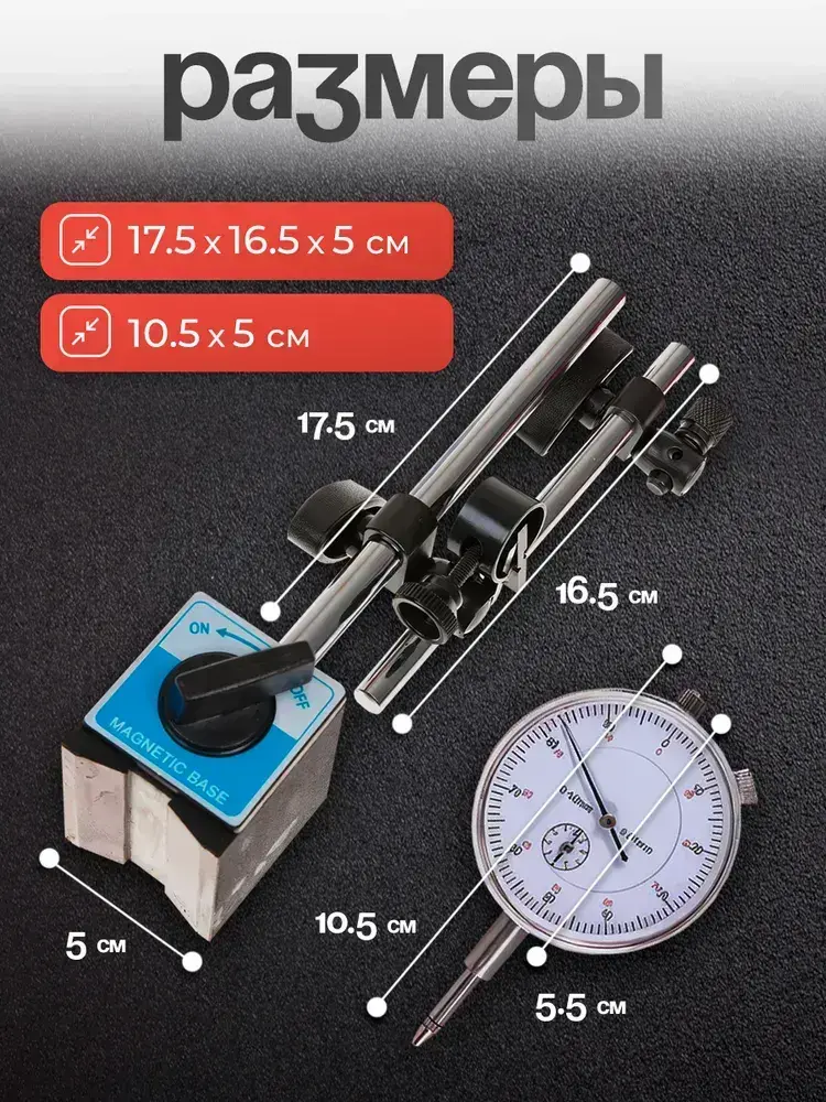 Индикатор часового типа с магнитной стойкой в кейсе Gestell