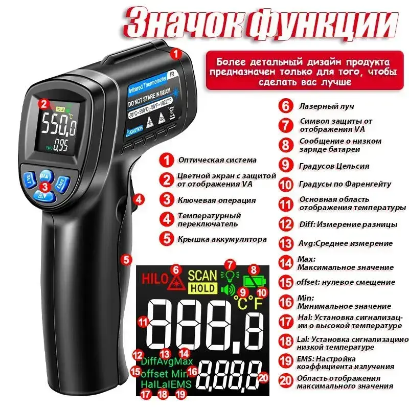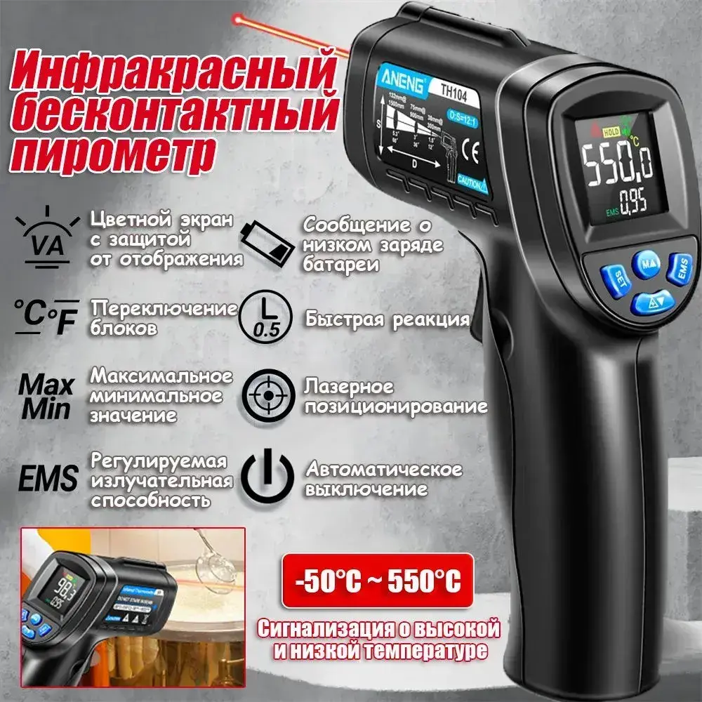 Инфракрасный пирометр ANENG TH104 (бесконтактный термометр / лазерный измеритель температуры)