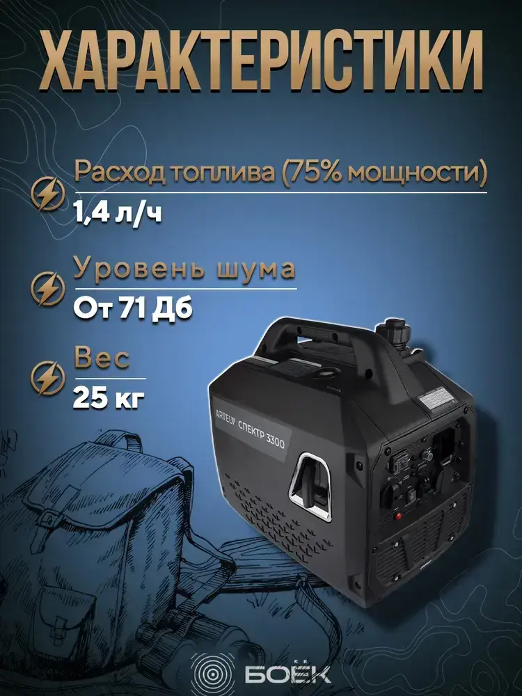 Инверторный генератор бензиновый 2квт ARTELV СПЕКТР 3300