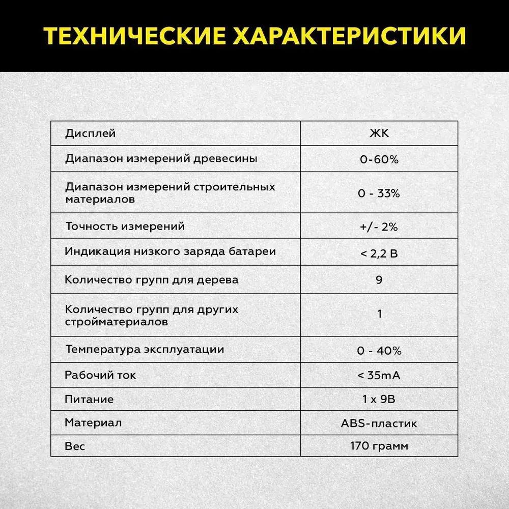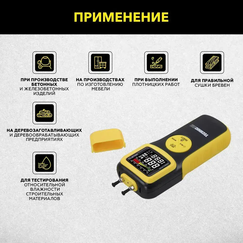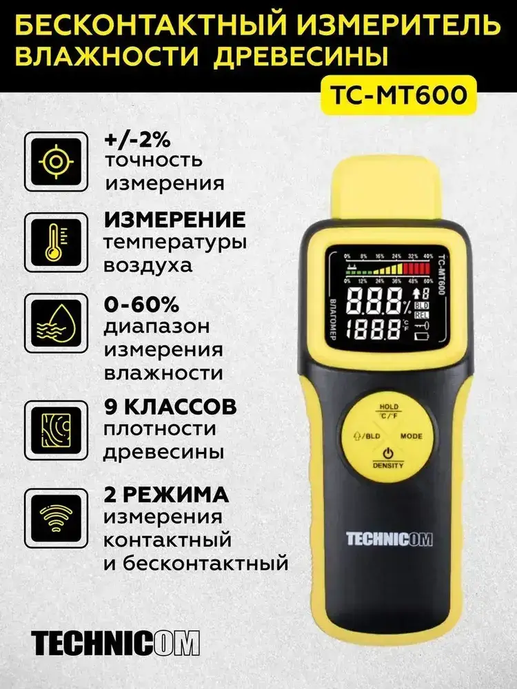 Измеритель влажности древесины бесконтактный TECHNICOM TC-MT600, 1х9В, влажность 0-60%, ЖК дисплей