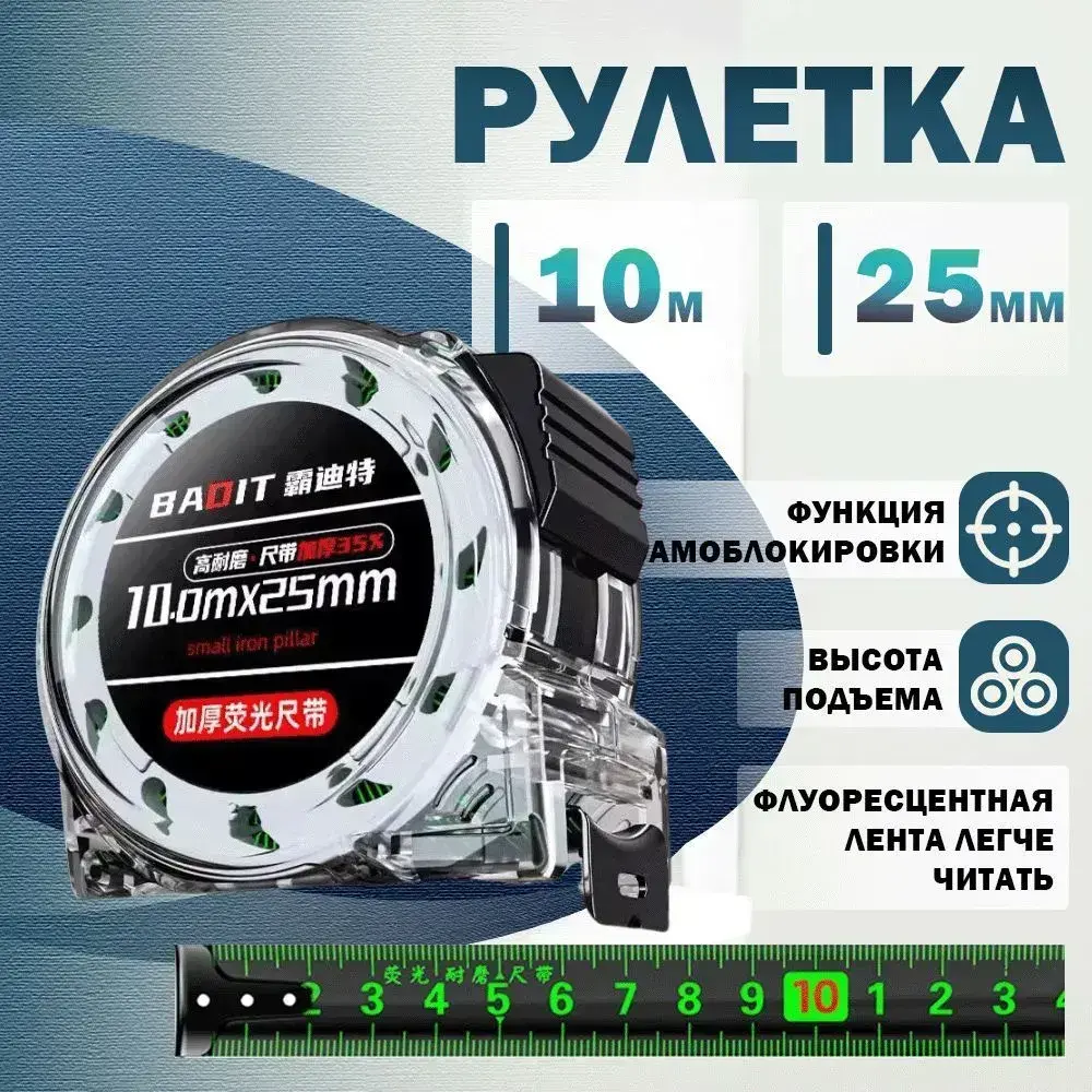Измерительная рулетка Геодезическая 10м x 25мм