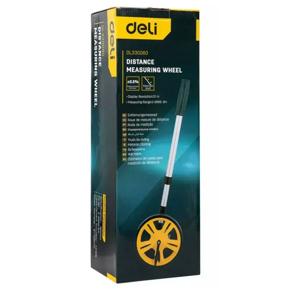 Измерительное колесо с механическим счетчиком Deli DL330060 диаметр 150мм, точность 0,5%, значение деления 0,1 мм, складная конструкция