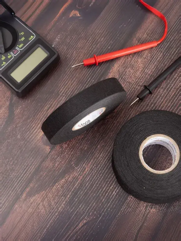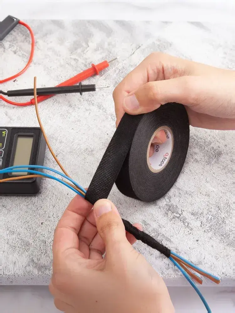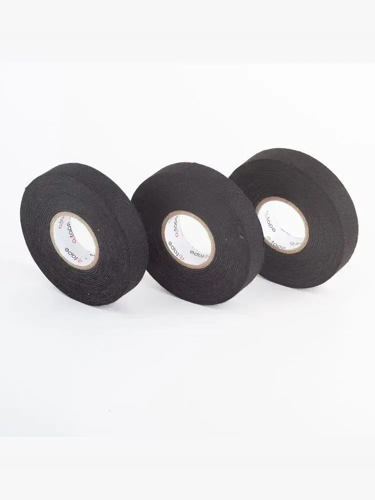Изолента черная автомобильная тканевая подкапотная лавсан, флисовая для жгутования, набор 3 шт, 19мм х 15м