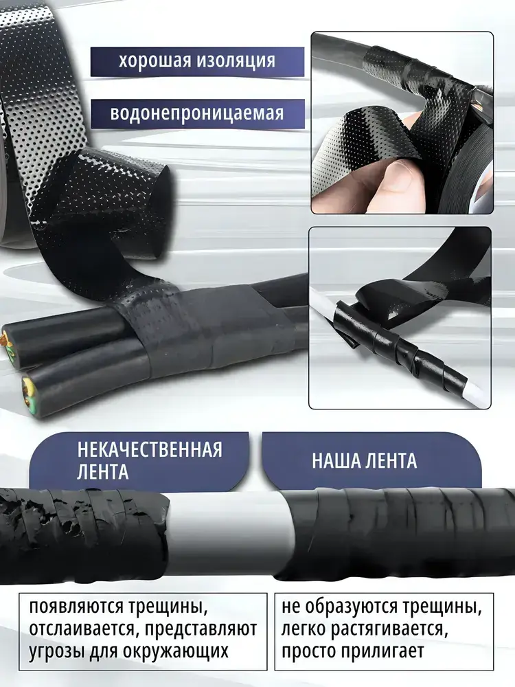 Изолента черная самовулканизирующаяся самослипающаяся 5м