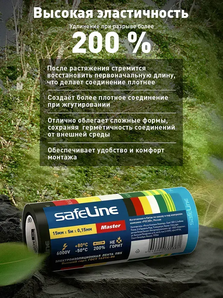 Изолента SafeLine Master 15/5, комплект 7 цветных МИНИ-роликов (ПВХ), ГОСТ
