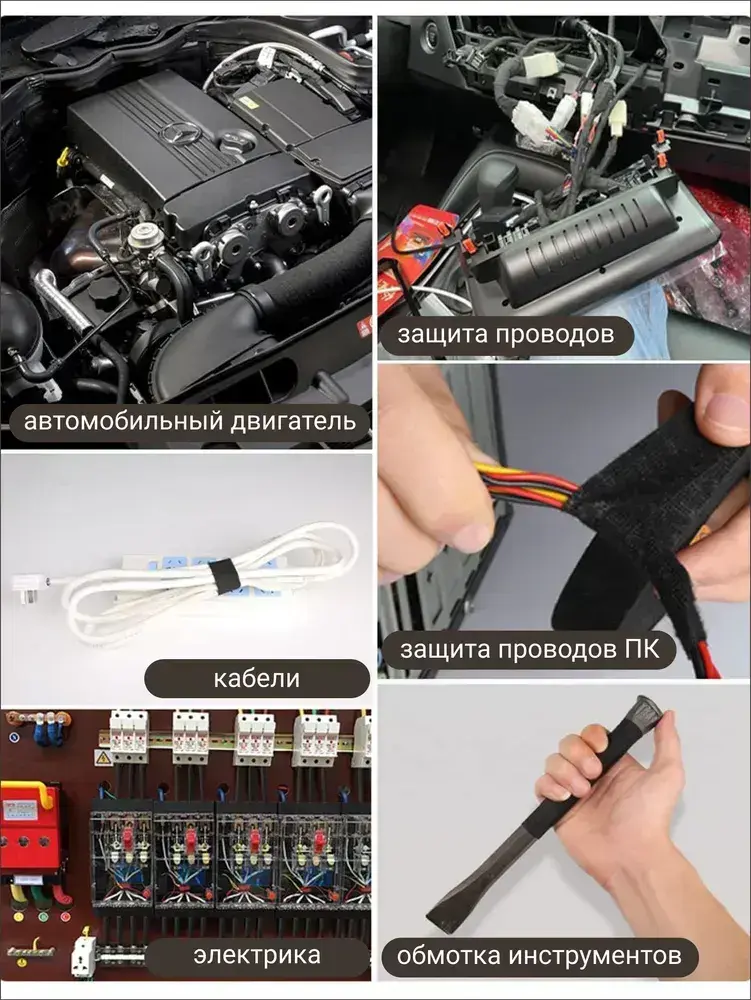 Изолента термостойкая тканевая для проводов, 5шт., 19мм*15м, / изолента черная для проводки набор