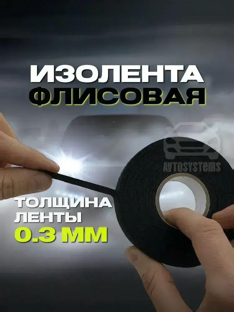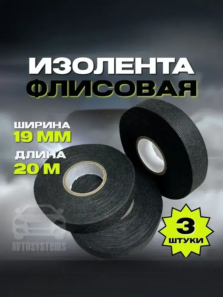 Изолента тканевая флисовая для проводов,автомобильная, 19мм х 20м, 3 шт.
