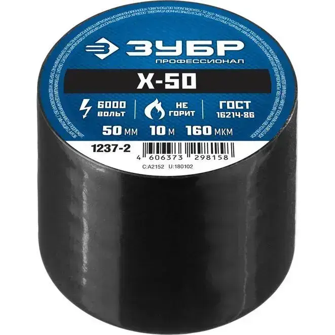 Изолента ЗУБР Х-50 ПВХ 50мм х 10м, 160 мкм, черная 1237-2