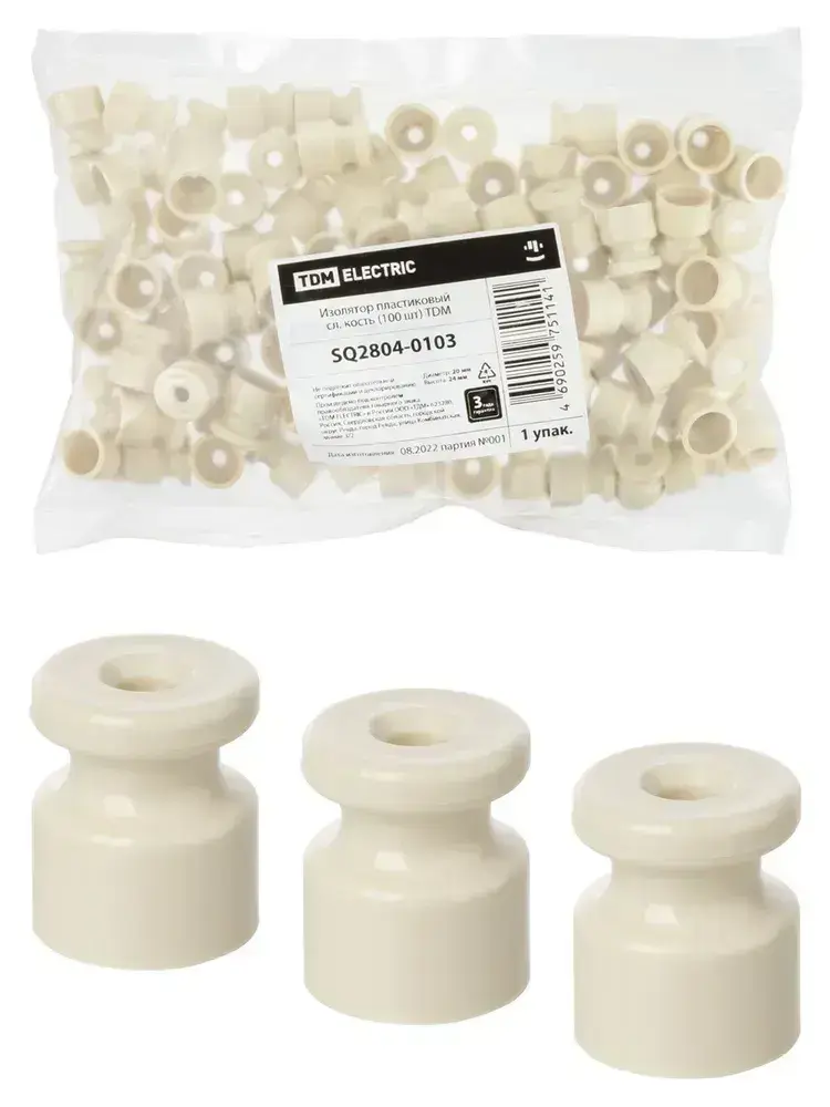 Изолятор пластиковый сл. кость (100 шт) TDM