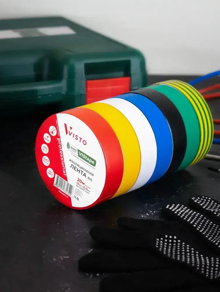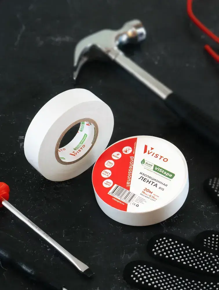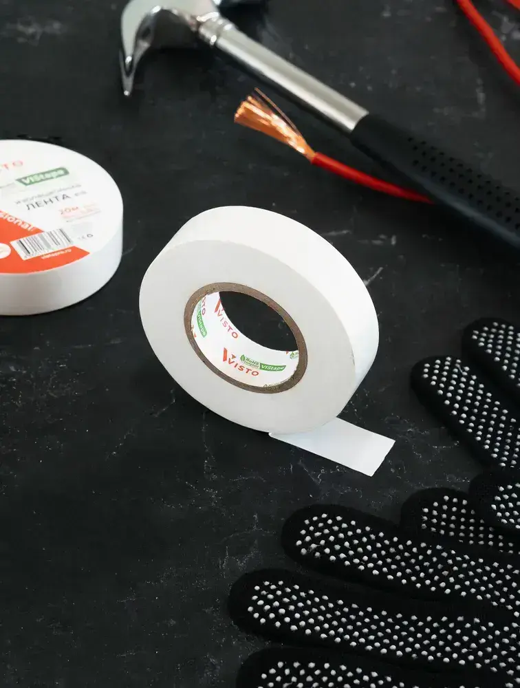 Изоляционная лента Изолента VISTO 19 мм 20 м 150 мкм, висто белая, профессиональная, 1 шт.