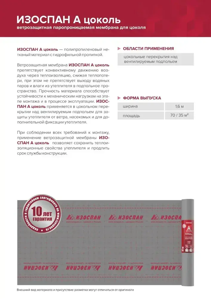 Изоспан А цоколь 35 м.кв. ветрозащитная мембрана для цоколя, пленка паропроницаемая, ветрозащита