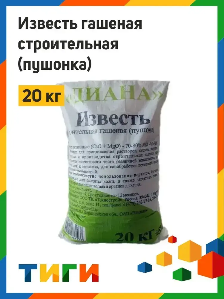 Известь гашеная (пушонка) 20 кг ДИАНА