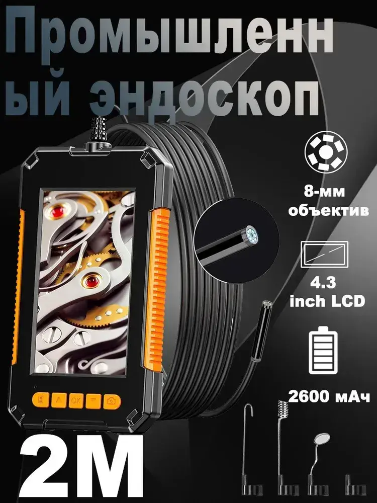 jingleszcn Эндоскоп с 4,3 - дюймовым экраном 8 мм 1 камера ручной эндоскоп 2 м
