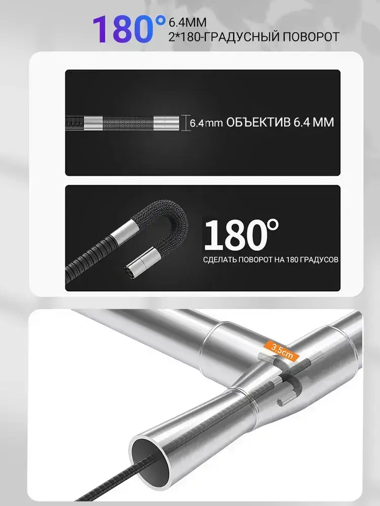 jingleszcn Поворотный эндоскоп 6.4 мм с Дисплеем /автомобильная камера /Бороскоп