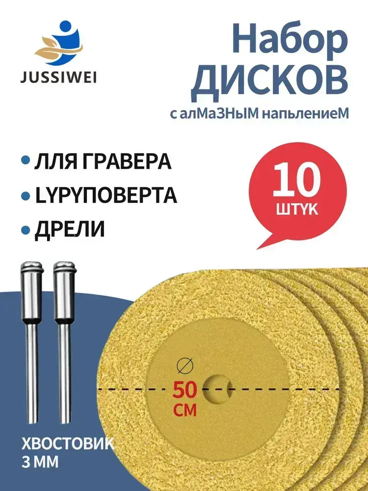 JUSSIWEI Диски алмазные отрезные для гравера углового, 50 мм, 10 шт.