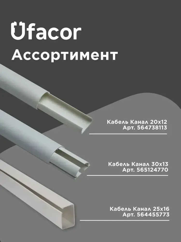 Кабель-канал полукруглый 20*12*1000 Уфакор АРКА (3 шт.), белый