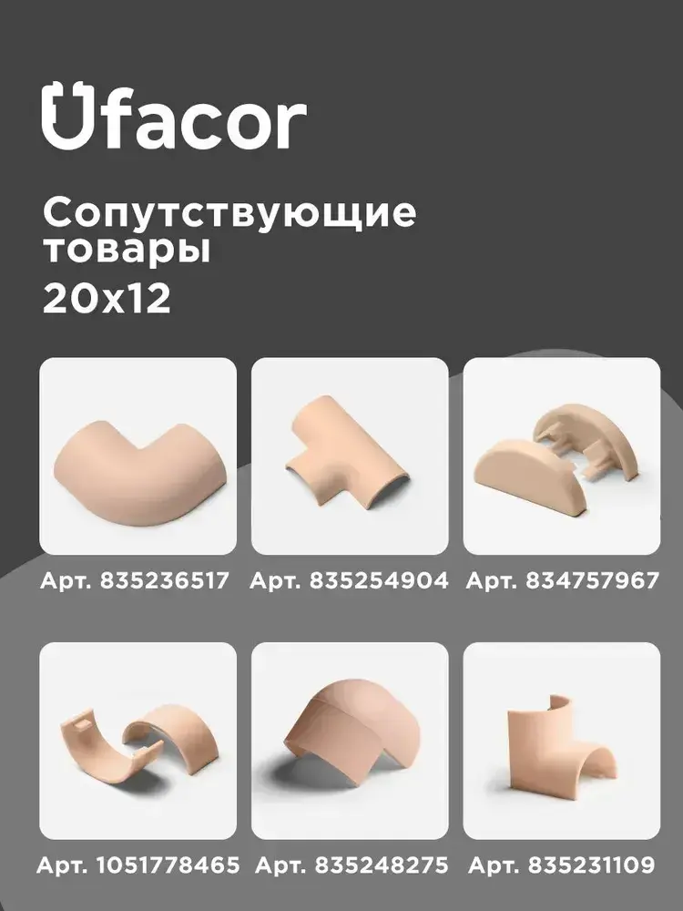 Кабель-канал полукруглый 20*12*1000 Уфакор АРКА (3 шт.), бежевый