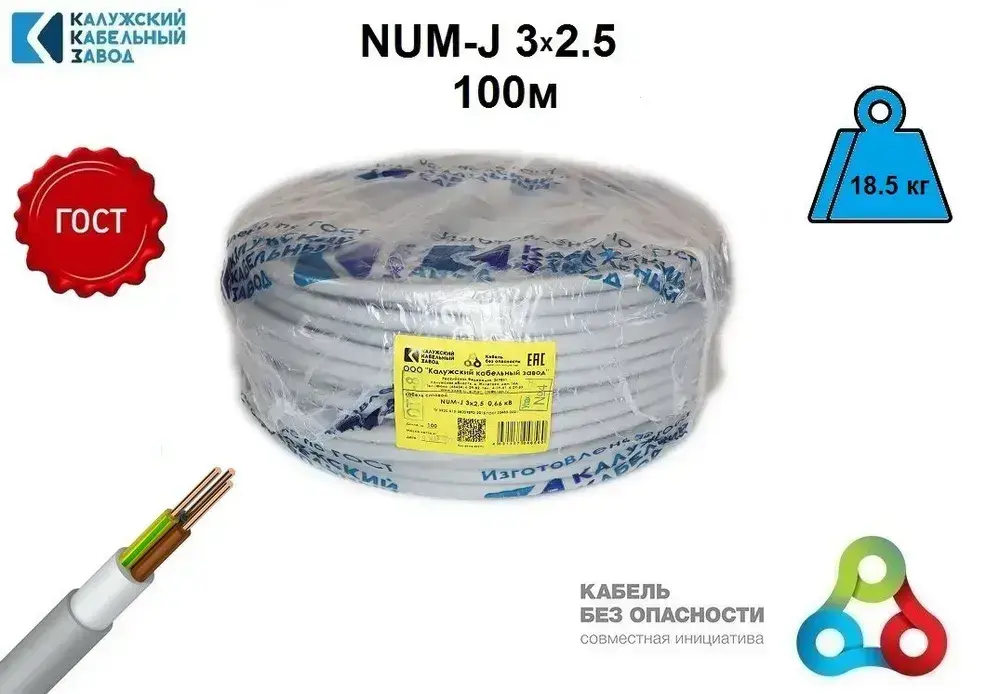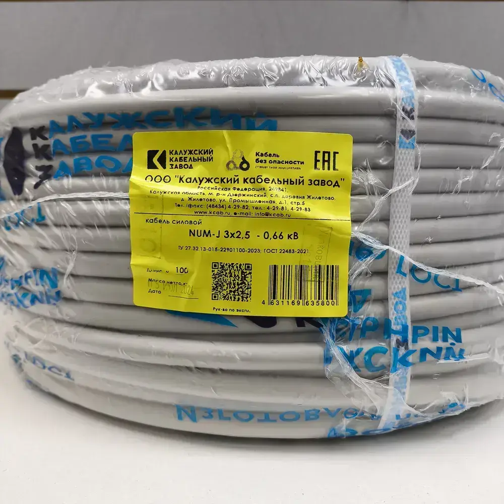 Кабель NUM 3x2,5 100 метров бухта Калужский Кабельный Завод