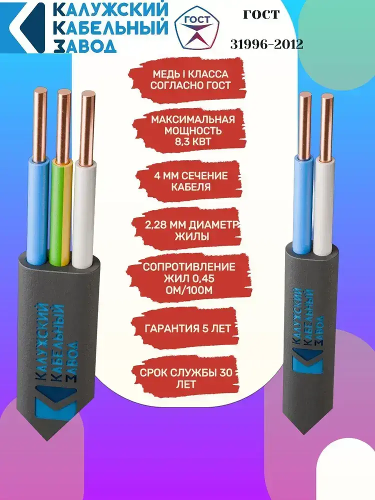 Кабель ВВГ-Пнг(А)-LS 3х4 ГОСТ 15 метров Калужский Кабельный Завод