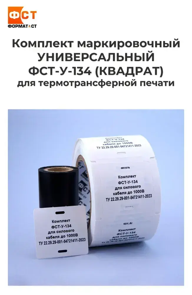 Кабельная бирка (квадрат) У-134 для маркировки силового кабеля, ТУ 22.29.29-001-54721411-2023 (Комплект 2в1: бирки универсальные У-134 квадрат 55х55мм 1000шт.+риббон 75м)