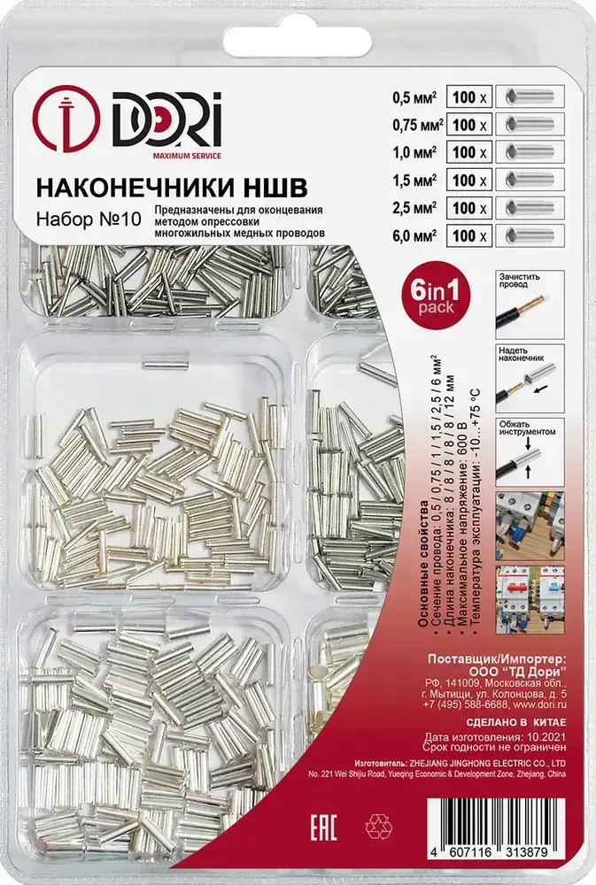 Кабельный наконечник НШВ DORI Набор №10, (600шт)