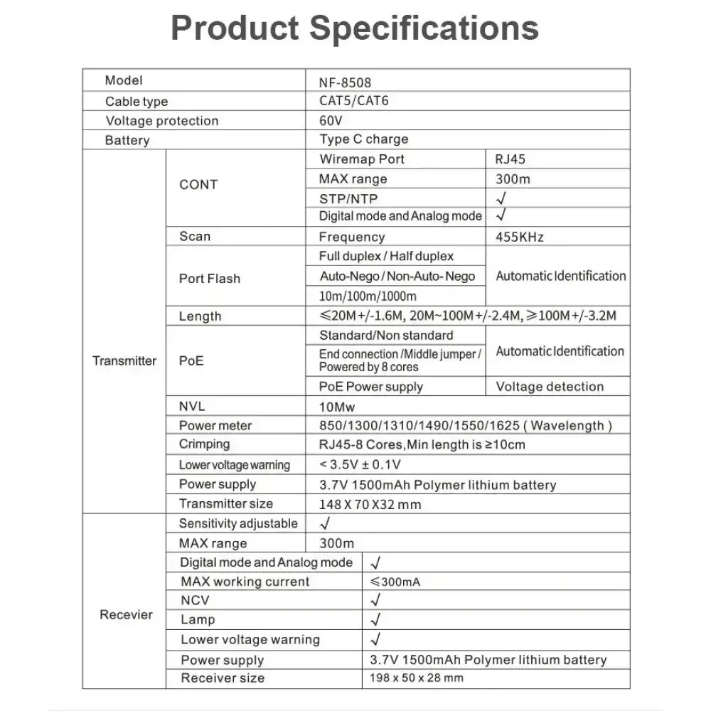 Кабельный тестер Noyafa NF-8508