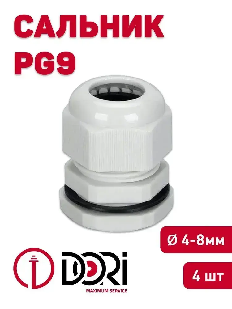 Кабельный ввод (сальник) DORI PG9 (4-8 мм, IP54) 4 шт.