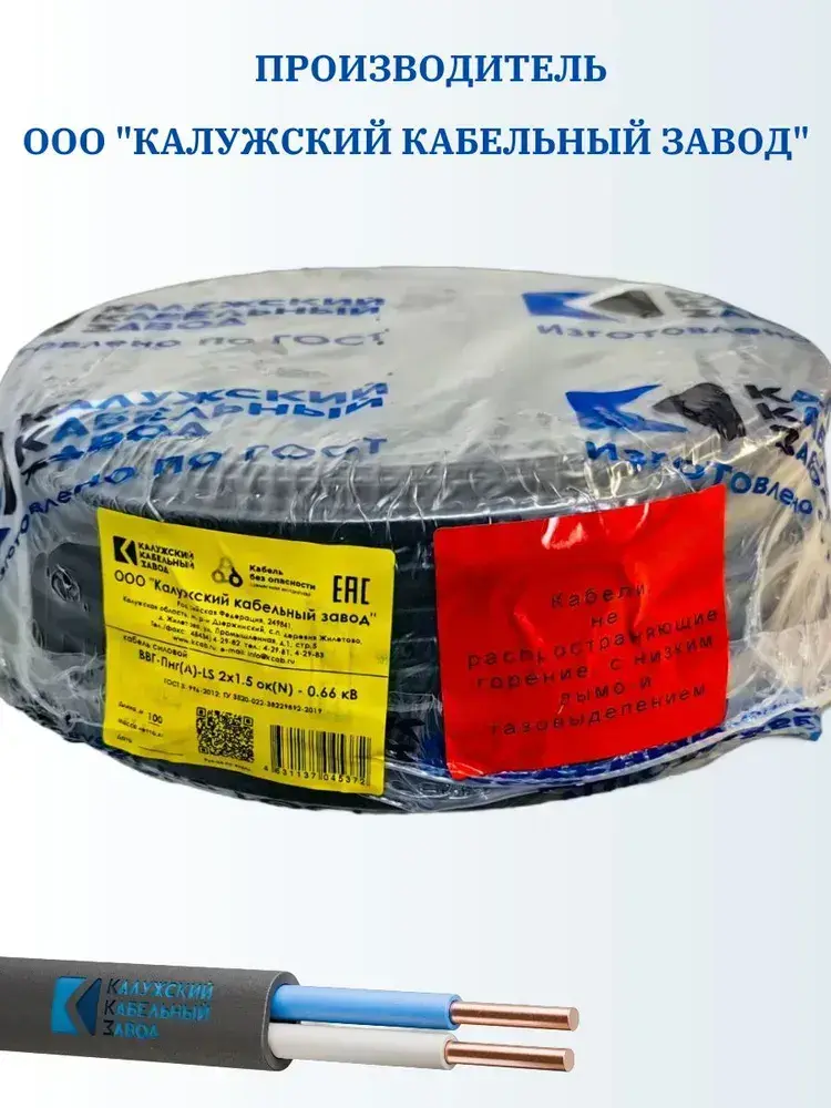 Калужский Кабельный Завод Силовой кабель ВВГ-Пнг(А)-LS 2 x 1.5 мм², 20 м