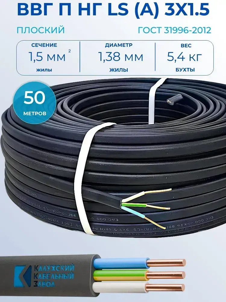 Калужский Кабельный Завод Силовой кабель ВВГ-Пнг(А)-LS 3 x 1.5 мм², 50 м